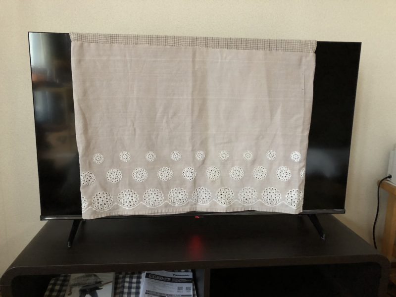 早速、テレビ画面カバーを作る。テレビが点いていない時の映り込みが気になるから。座っている自分の後ろに誰かいたら…怖いでしょ。