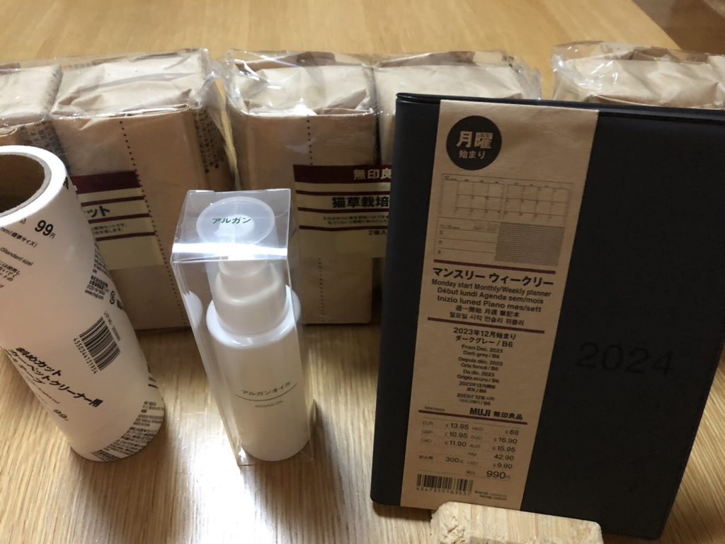 なぜなら「無印週間」終了間際…!なんとか買っておきたい物がある。アルガンオイル、猫草、来年のスケジュール帳などなど…どうせ買うなら10%オフの時がお得だもの。