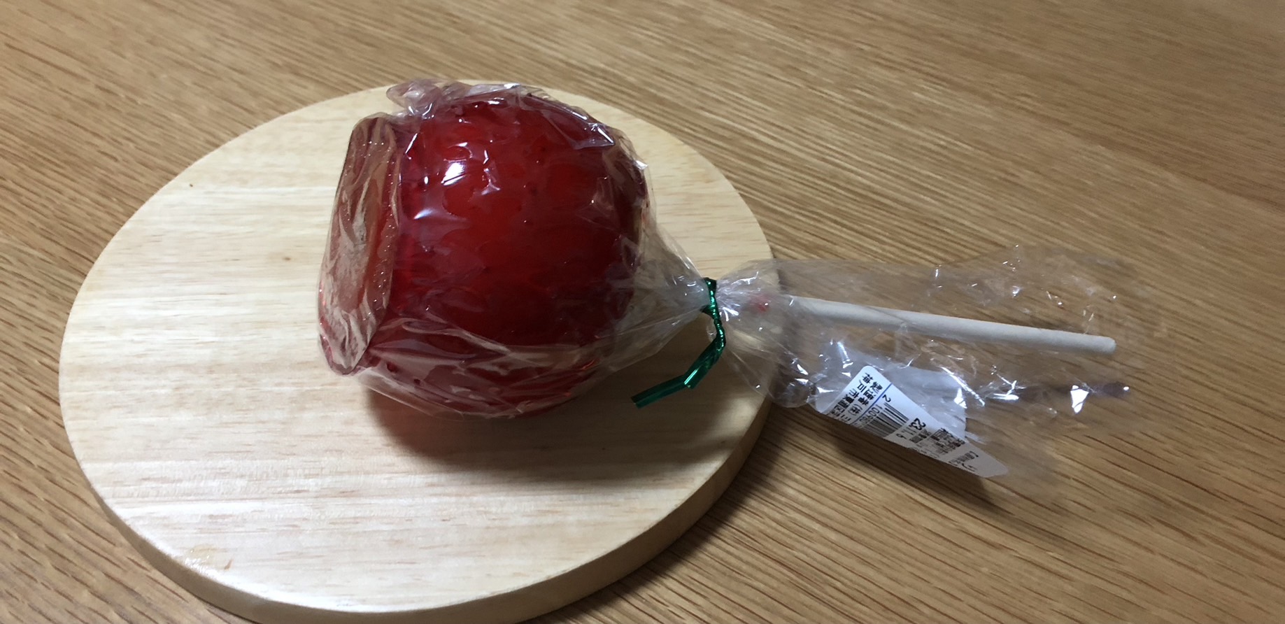 なんと「りんご飴」が売ってた。カゴに2つだけ「300円」とある。でも、よく見ると3割引きになっていた。う~ん…悩む……買う。だってお祭りなんか行く機会がないし、割引きで200円くらい?安いじゃない。