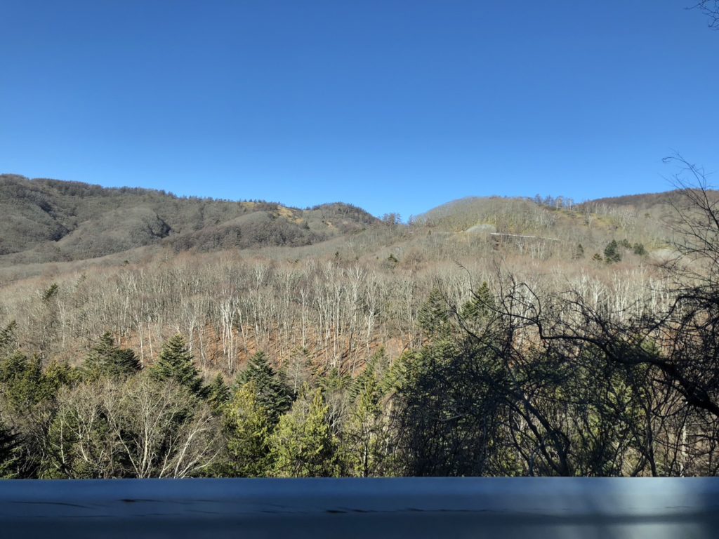 高速道路だとおとなしいももちゃんなのに…山道を走ると大興奮。「降りて歩きたい!」と「ピィピーピィピー」鳴いて地団太を踏む。それほど散歩したくなる景色。