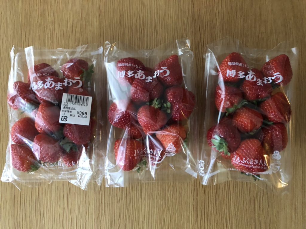すると、時間帯のタイミングが良かったのか「見切り品コーナー」で、きれいなあまおう苺が3パック出されているのを発見…!