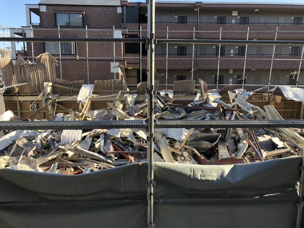 防音シートが外されると、がれきの海。わお!