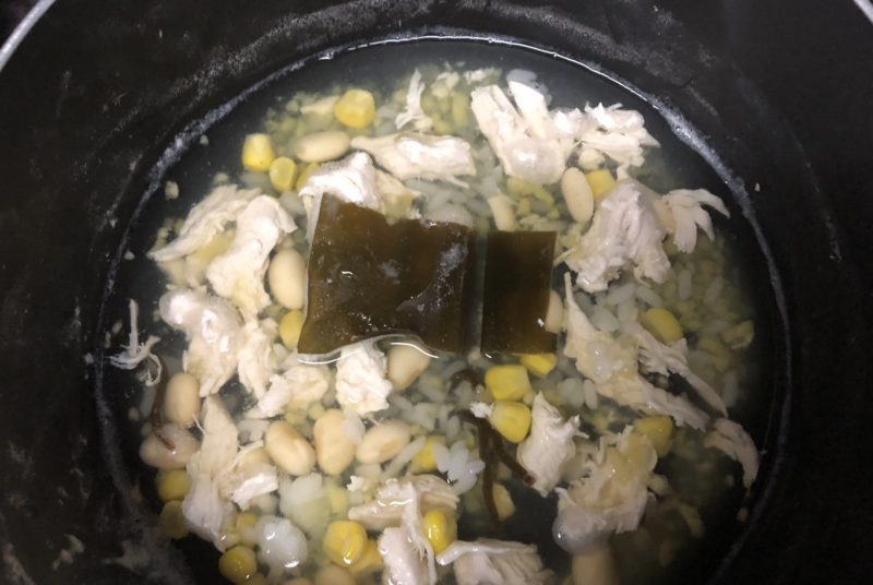 昆布も入れてグルタミン酸+ささみのイノシン酸の旨味効果を出す!