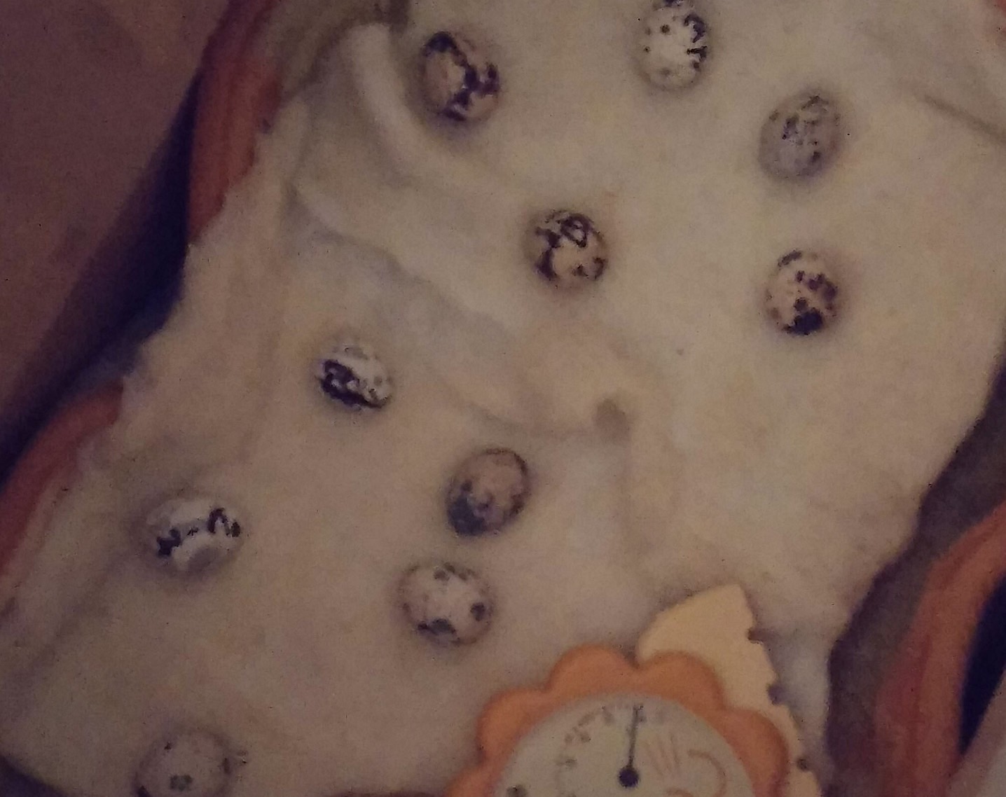 それらを、電気座布団で温まった綿の上にまんべんなく並べた。⤵