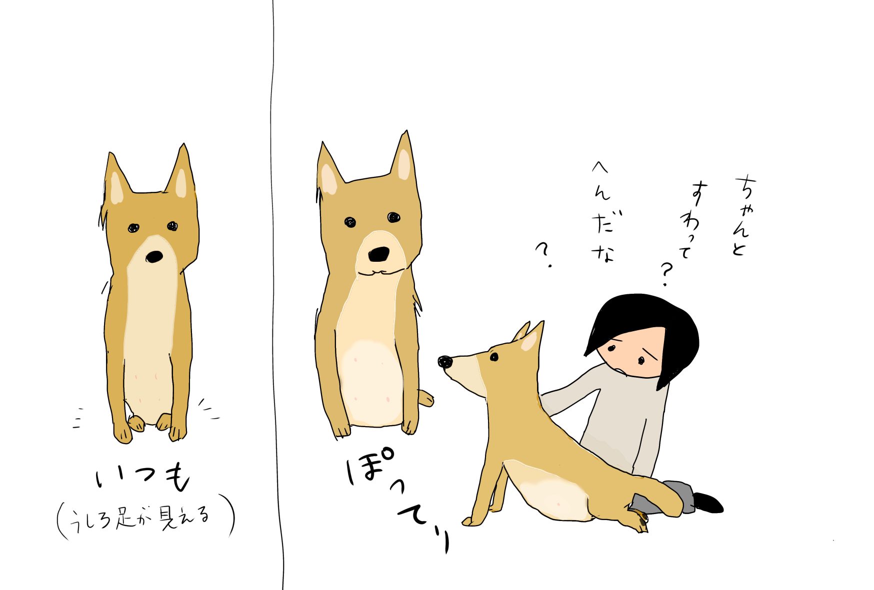 最初は、ももの「座り方がおかしいな」と思って、「ちゃんと座ってごらん」なんて言ってた。⤵