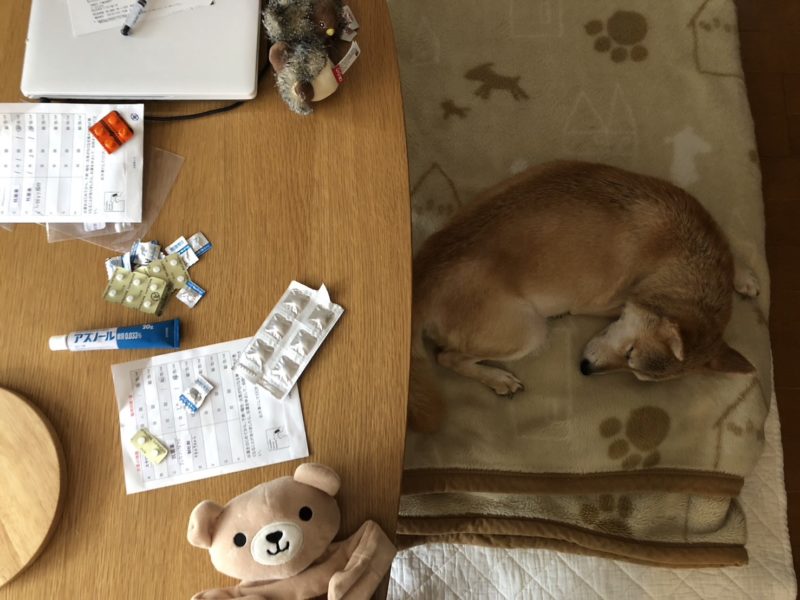 やっと落ち着いてマットで眠るようになった。ふう…助かる。ブルブル震えは続いている。お腹を触ると熱があるようだ。