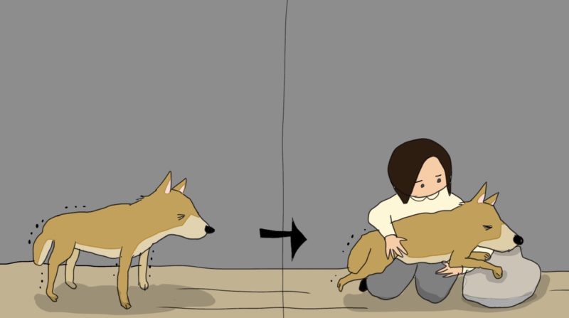 もも、下痢・嘔吐しながら家の中をよろよろ彷徨う。身の置き場が無い様子。その後ろをオロオロ付いて回るわたしとみのちゃん。