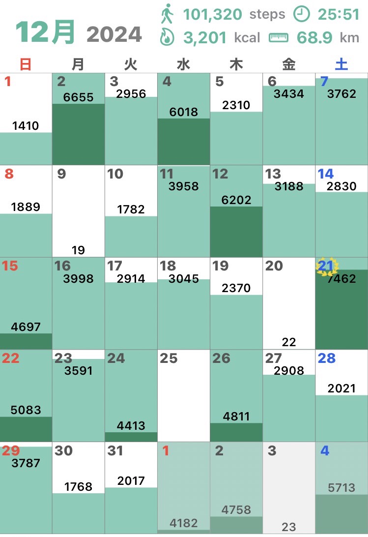 昨年の今頃、わたしは努めて健康のために“もも散歩”をしていた時期。ももちゃんの術後の経過も良かった頃。当時の歩数計を見ればわかる。⤵