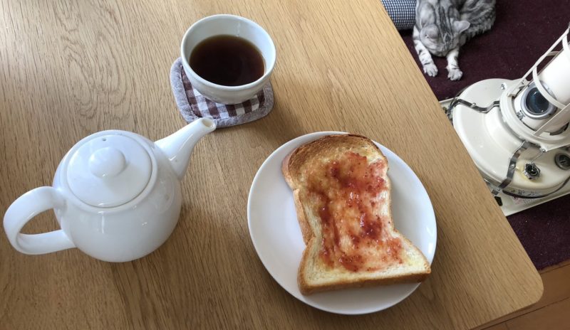 ジャムトーストとともに。(写り込みは…グーグー。)