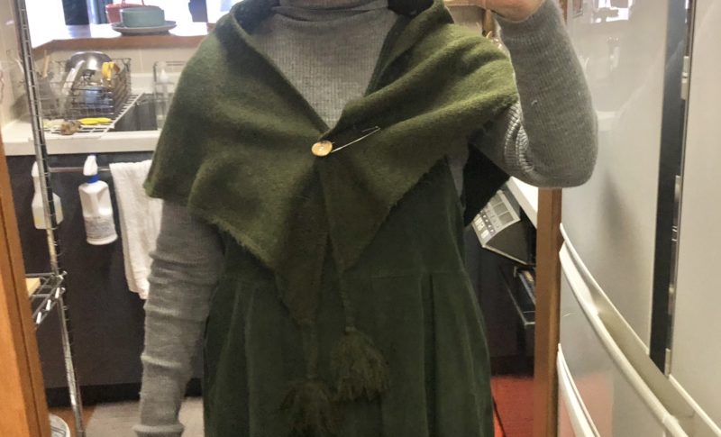 三角ショール。ぼんぼりが可愛いと思って。⤵